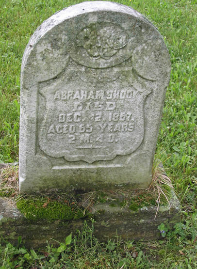 ABRAHAM SHOOK was born October 08, 1802, and died December 12, 1867 in Clarion Co., PA. He married CHRISTINA ELIZABETH GRENOBLE (GRANOBLE) December 10, 1826, daughter of JACOB GRENOBLE and CATHERINA WILLEMANN.